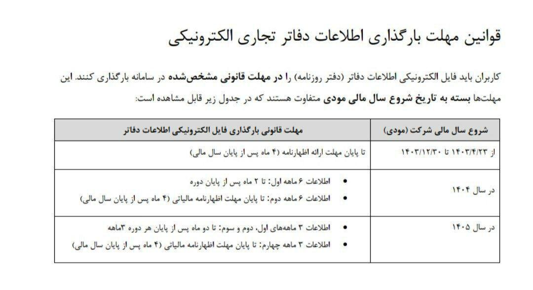 مهلت بارگذاری اطلاعات دفاتر تجاری الکترونیکی به چه صورت است؟